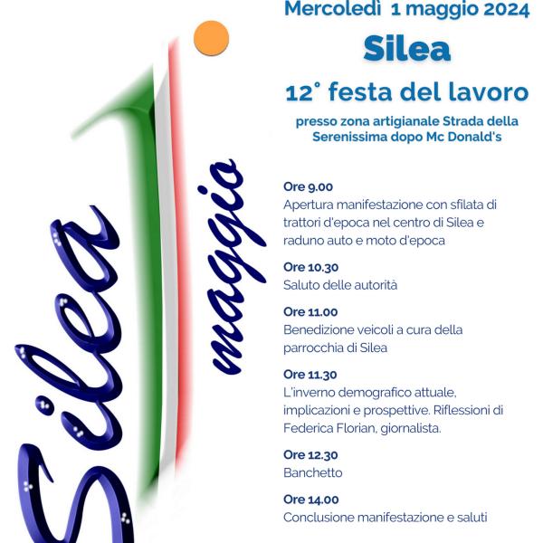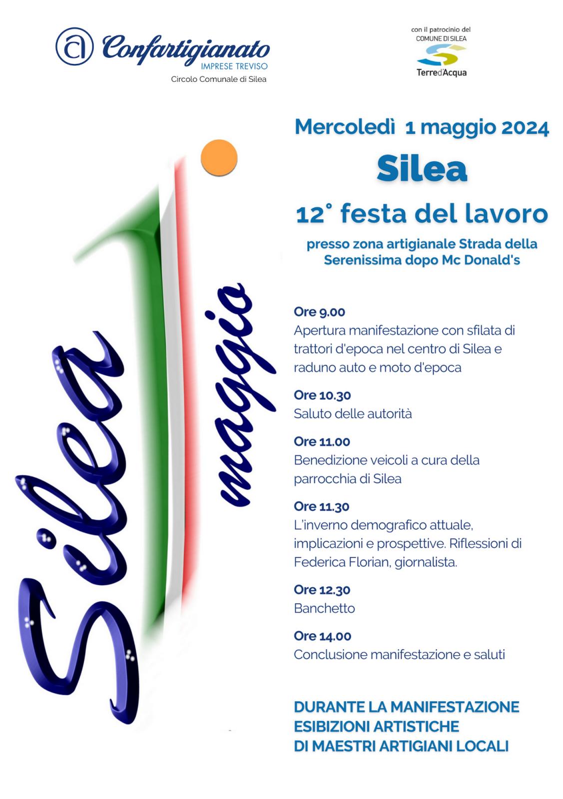 Vieni alla 12° edizione della festa del primo Maggio, patrocinata dal comune di Silea e Confartigianato Treviso, presso strada della serenissima dietro Mc Donald's.