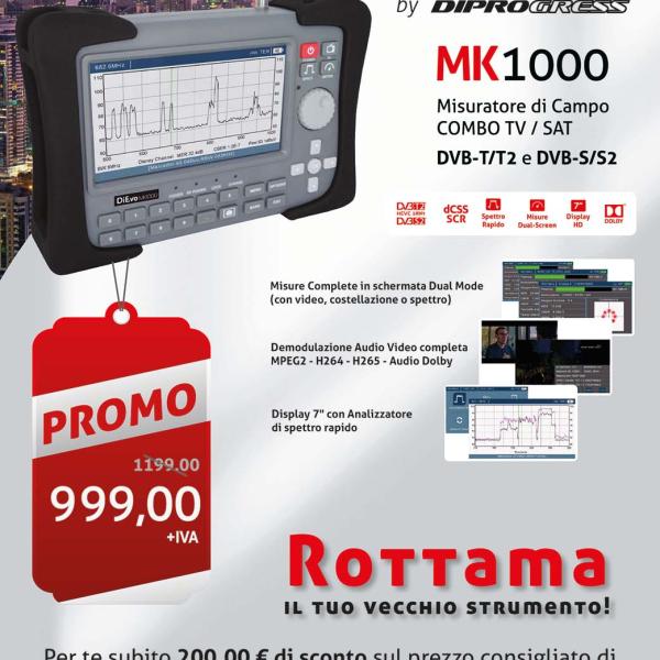 Rottama il tuo vecchio strumento! Per te subito 200€ di sconto sul prezzo consigliato IVA esclusa di 1199.00€ sull'acquisto del misuratore TV/SAT DIEVO by DiProgress DPMK1000.